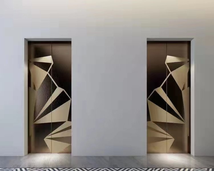 电梯厅门装饰香槟金镜面蚀刻不锈钢电梯装潢美观大气
